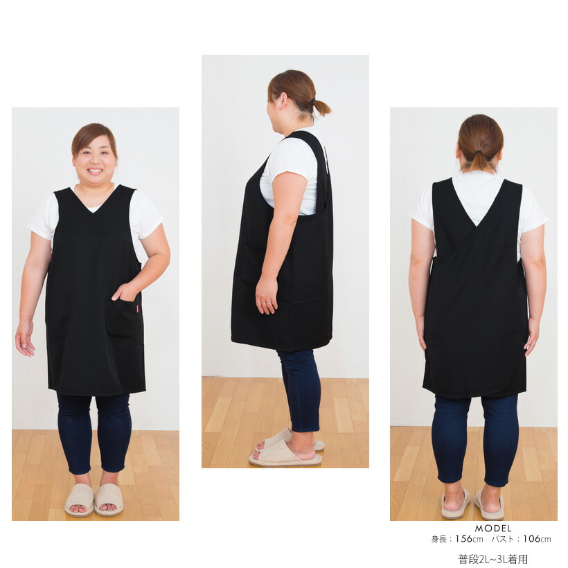 日本製のこだわり3Lサイズ エプロン。ボタンや腰紐などのない、上からかぶるだけの着やすいエプロン