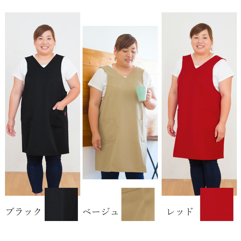 かわいい3LサイズのVネックエプロン。きれいなラインが出るように デザインやサイズ感にこだわった 3Lゆったりデザイン♪ ボタンや腰紐がないので、上からかぶるだけのさっと着やすい人気の形。 丁寧な作りの日本製エプロン。工場直営のエプロン専門店ならではの高品質エプロンは、ギフトやプレゼントにも人気です。
