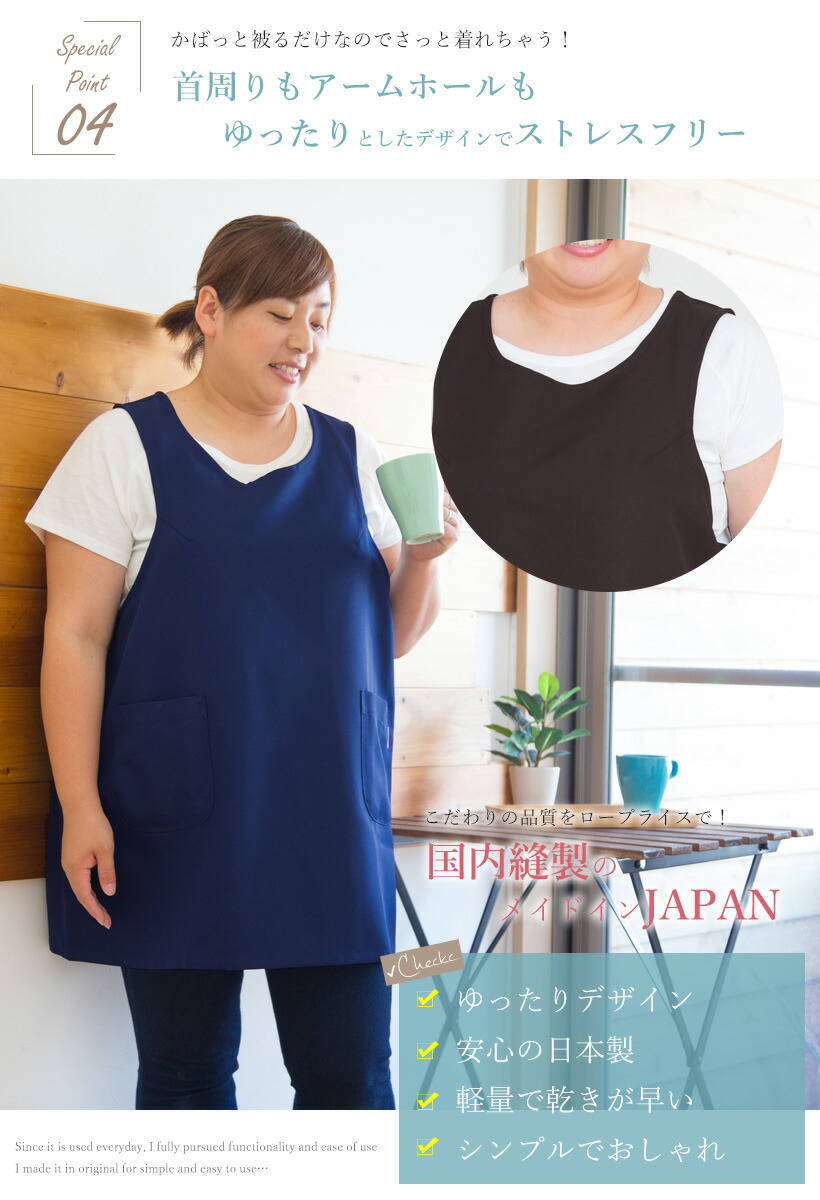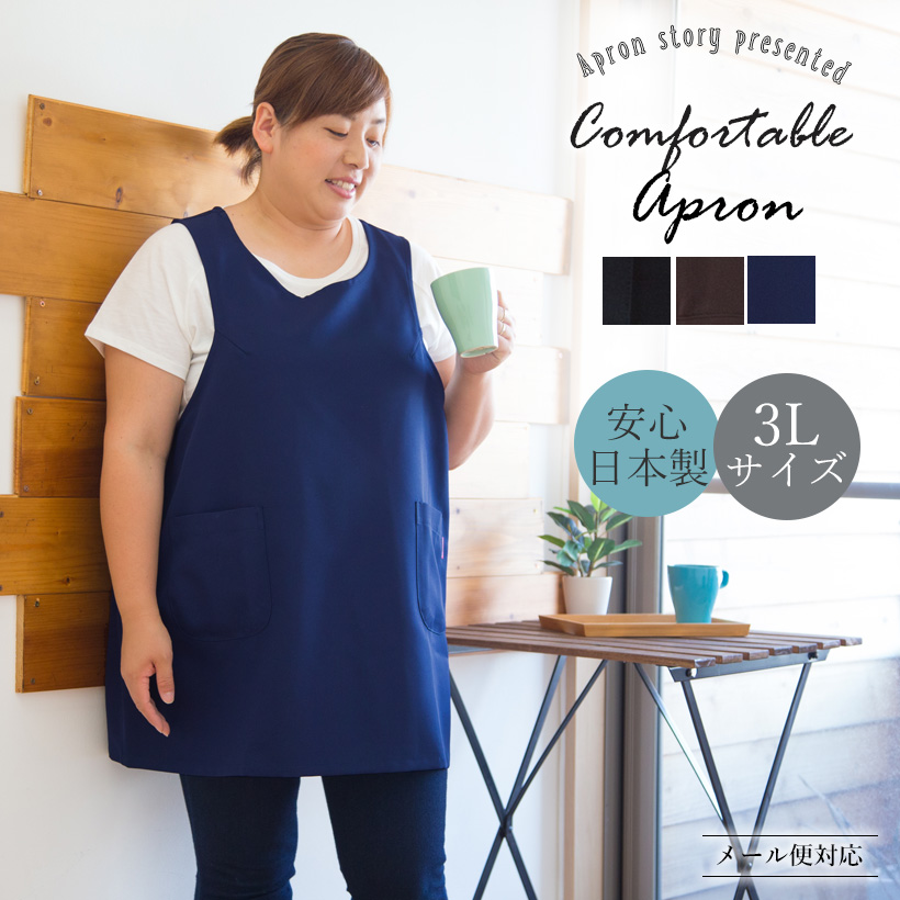 大きめサイズのタブリエ エプロン【3Lサイズ】大きいサイズ 日本製 シンプル 無地 おしゃれ プレゼント ギフト 母の日【メール便対応可】【N】【Y】