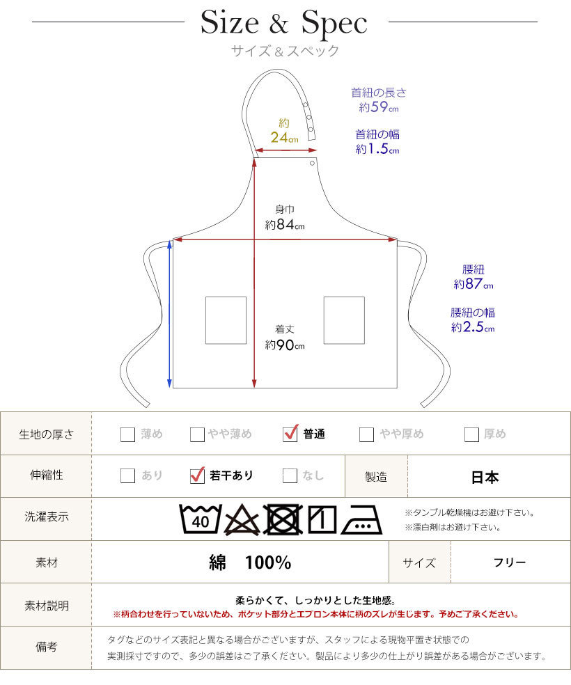 ※柄合わせを行っていないため、ポケット部分とエプロン本体に柄のズレが生じます。予めご了承ください。