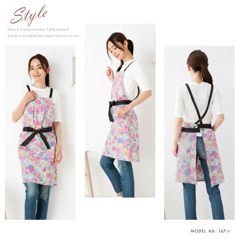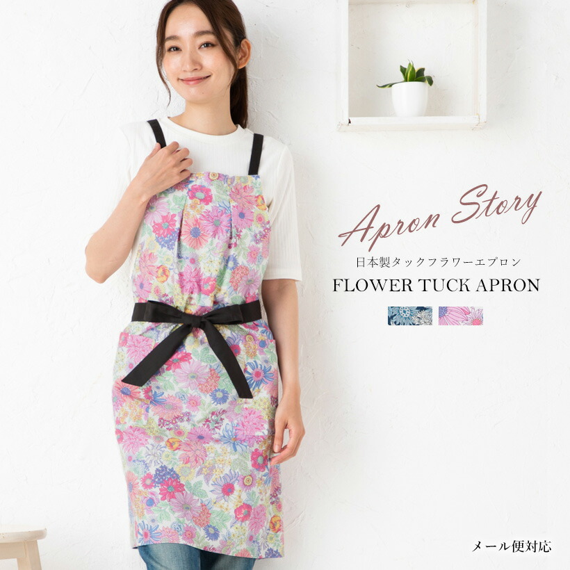 フワラー柄タックエプロン クロスエプロン 日本製 おしゃれ プレゼント 母の日【メール便2枚まで対応可】【N】【Y】