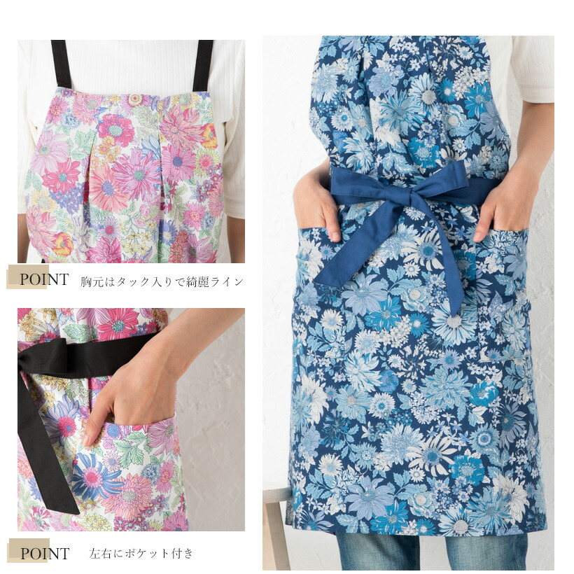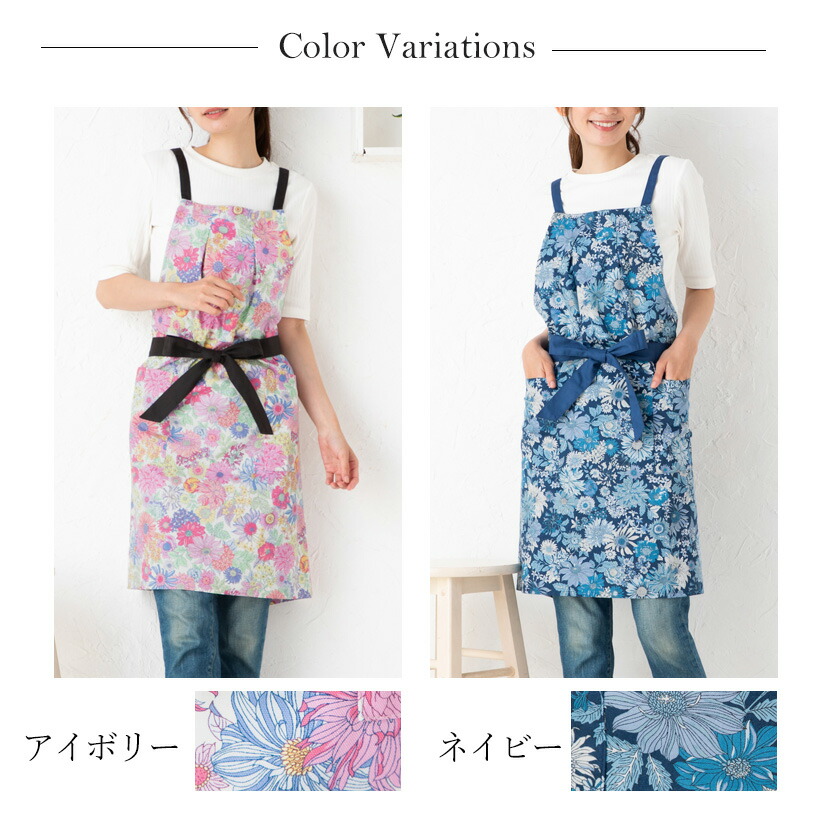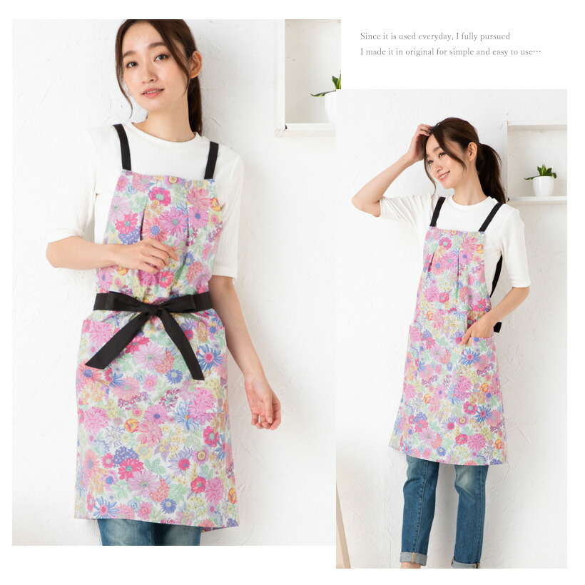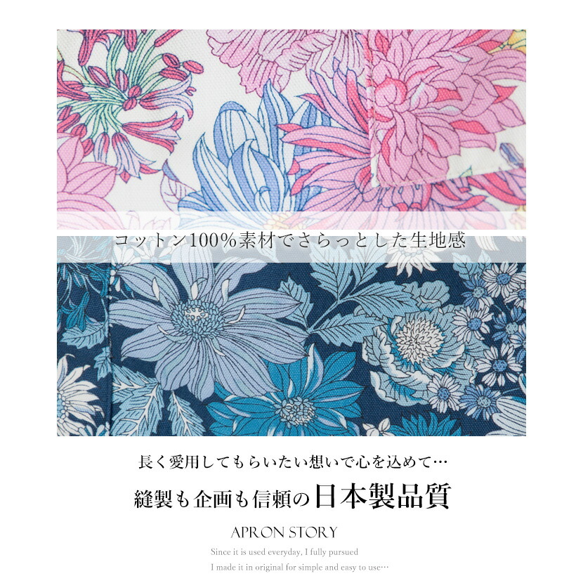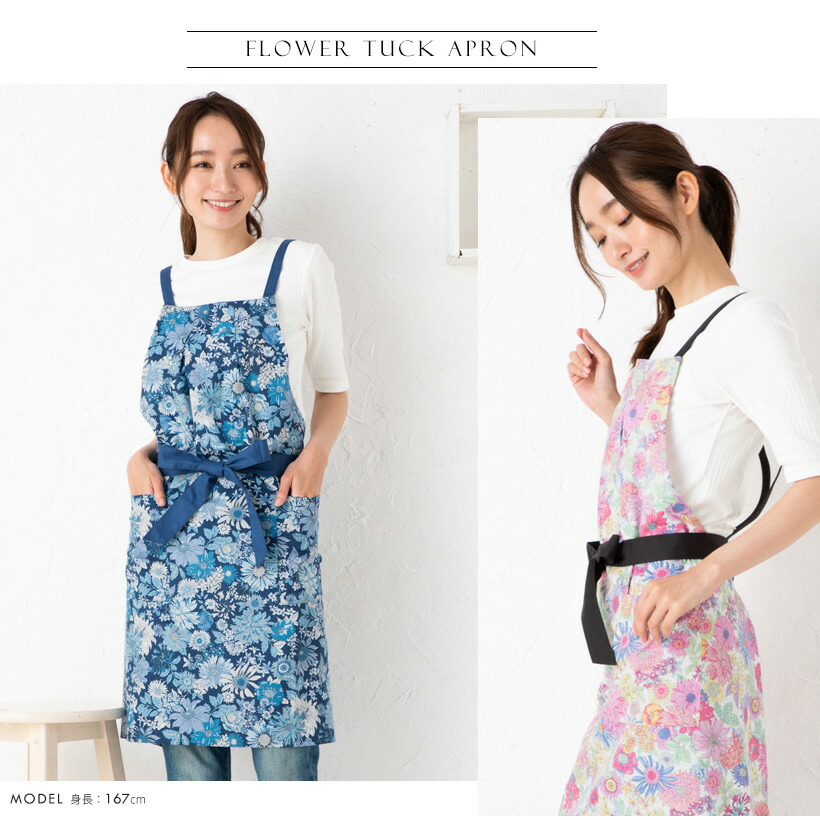 日本製のこだわりエプロン。フワラー柄タックエプロン
