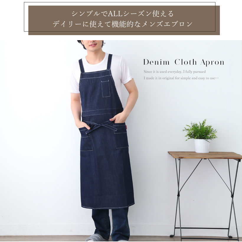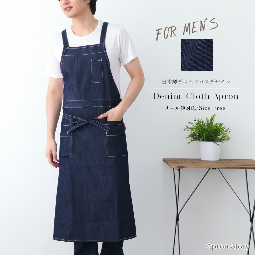 【メール便2枚まで対応可能】デニムクロス メンズエプロン 【日本製】男性用 シンプル 作業 無地 おしゃれ プレゼント ギフト【N】【Y】