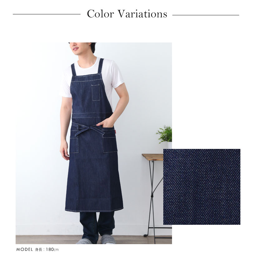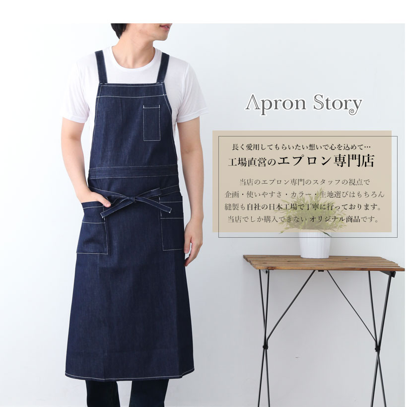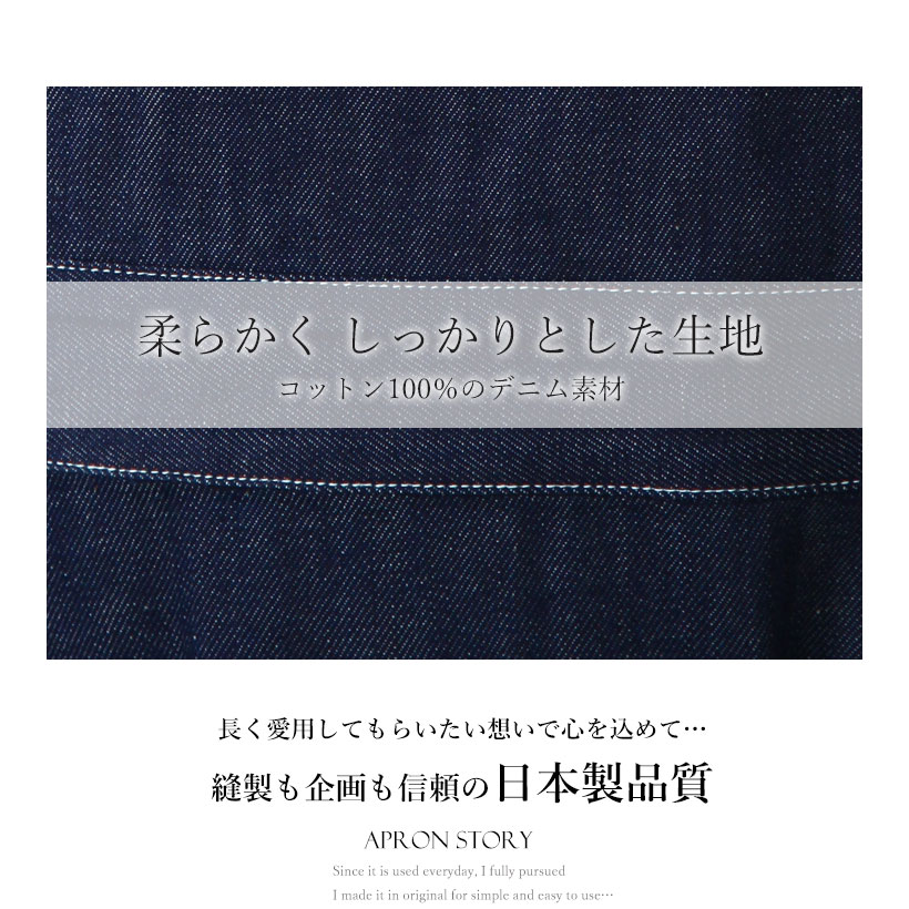 安心の日本製!おしゃれな飽きのこない シンプルデザインの デニムクロスエプロン。