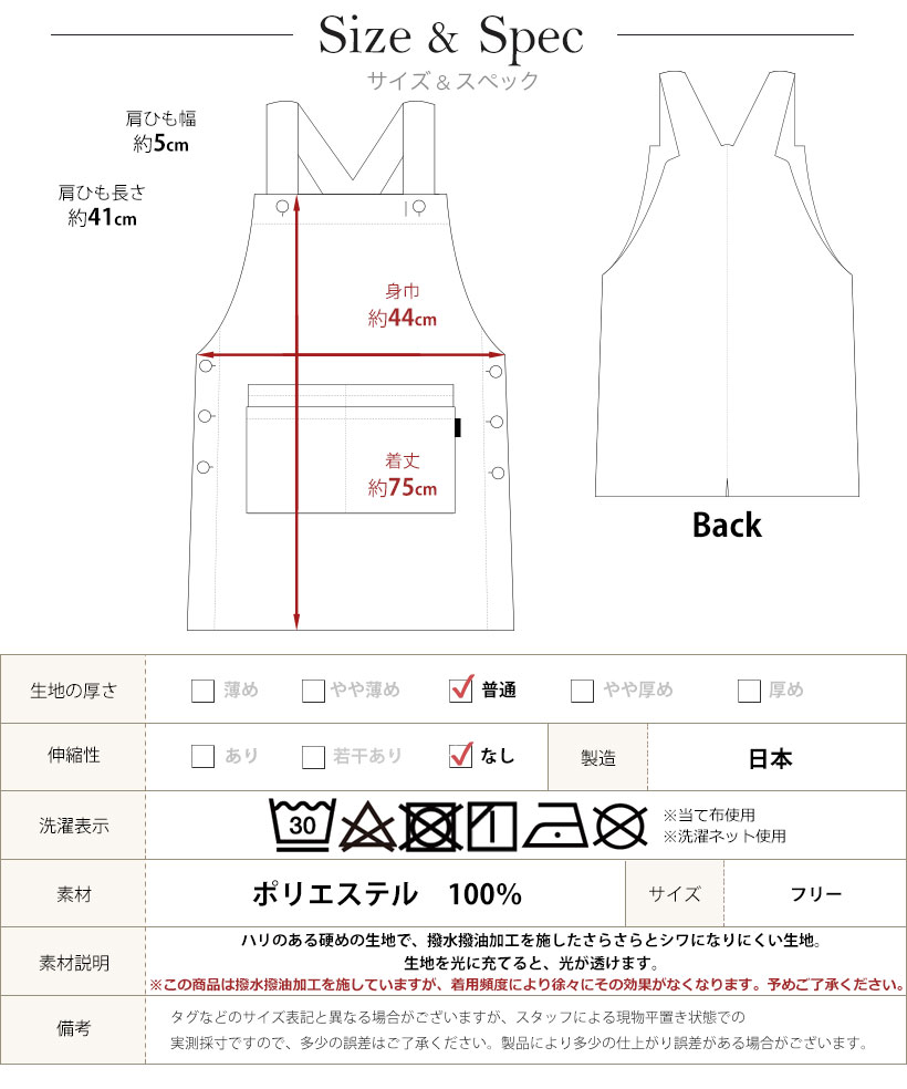 この商品は撥水撥油加工を施していますが、着用頻度により徐々にその効果がなくなります。予めご了承ください。