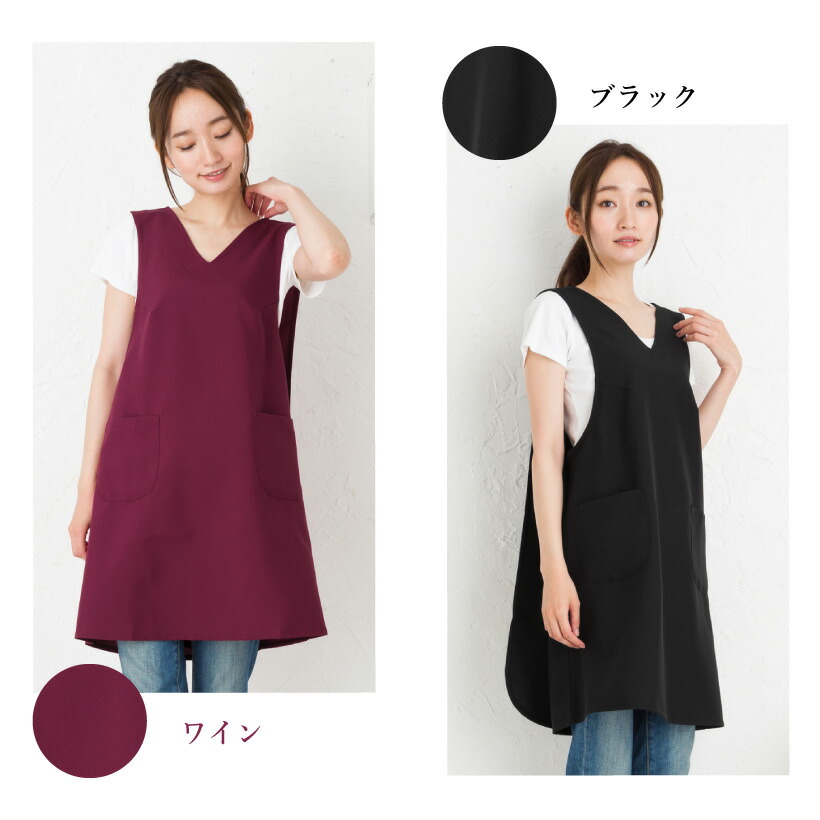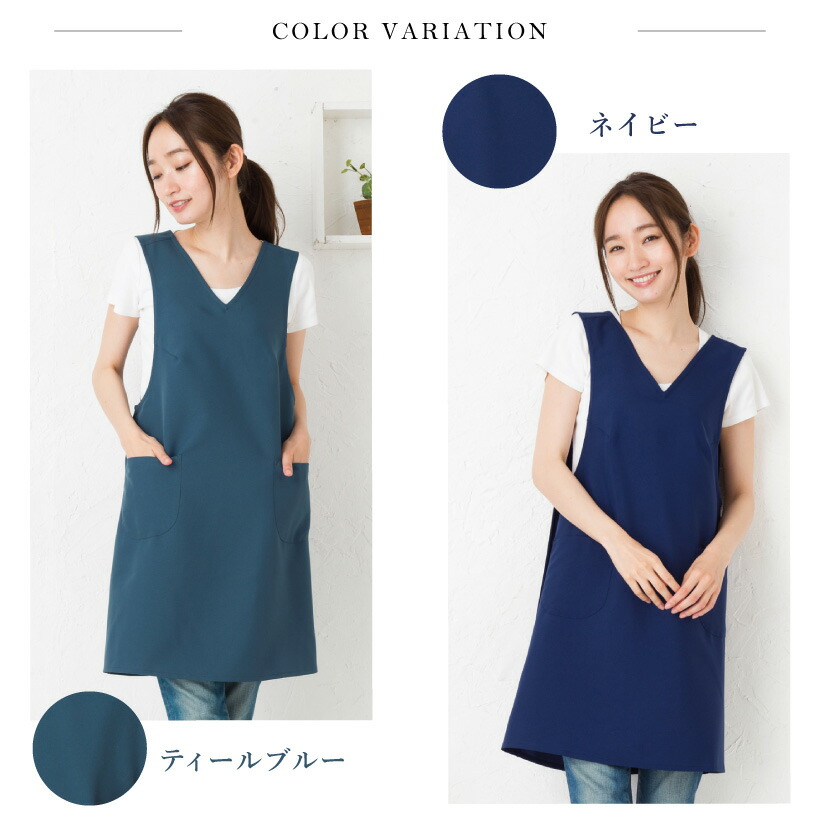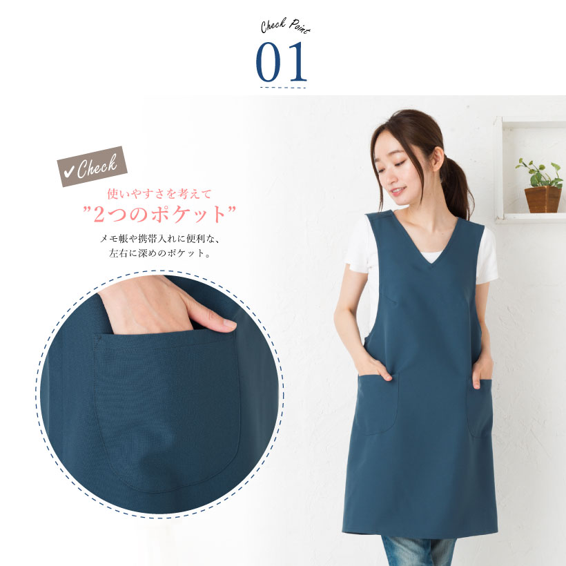 かわいいVネックエプロン。撥水撥油加工なのでネイルサロンなどショップ店員さんにもピッタリ! 使いやすい2つのポケット付き! ボタンや腰紐ながないので、上からかぶるだけのさっと着やすい人気の形。着脱の時間短縮に。 デザインや生地にこだわった、丁寧な作りの日本製エプロン。工場直営のエプロン専門店ならではの高品質エプロンは、ギフトやプレゼントにも人気です。