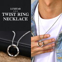 送料込 リング チェーンネックレス メンズLUXSTAR ツイスト リング ネックレス チェーン 長さ 50cm メンズ 金属アレルギー対応 ステンレス シンプル シルバー 銀 チェーンネックレス わっか トップ 人気 ブランド 送料無料