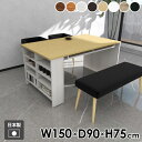 ダイニングテーブル 2人掛け 一人暮らし おしゃれ 日本製 シンプル リビングテーブル 食卓 棚付き 机 ダイニングテーブルのみ 木製 カフェテーブル オープンラック 作業台 単品 本棚付きダイニングテーブル 2人掛け 収納付き 食卓テーブル 4人用 おしゃれ 単品 リビングデスク パソコンデスク 作業台 本棚 北欧 カフェテーブル 二人用 収納棚 テーブル単品 食卓 ソファーに合う 食卓机 勉強机 机 収納 【Hammer3/ラック/幅150cm奥行90cm高さ75cm/木目】 ☆
