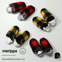 スリッパと靴下のいいとこどりした室内履き。お家時間を楽しく快適に。Mサイズ Lサイズ展開、クリスマスなどギフトにも。インテリア 日本製merippa ルームシューズ 起毛ブロックチェック×ファー スリッパ バブーシュ おしゃれ 北欧 冬 あったか 暖かい ウール メンズ レディース ユニセックス プレゼント メリッパ