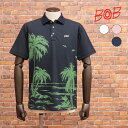 30代 40代 50代 オシャレ メンズウェア【期間限定P11倍 閉店SALE】【アウトレット】BOB 半袖ポロシャツ 074833007 日本製 パームツリー ヤシの木 ハイビスカス プリント メンズ 紳士 ボブ【ka146-24200TAF】
