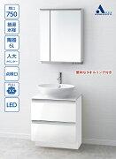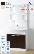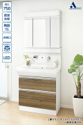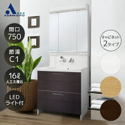 【公式店】\ネット限定/洗面台 750幅 片引出し 三面鏡 LED照明 くもり止めヒーター付き シャワー水栓 混合水栓 洗面化粧台 ALBA アルバ おしゃれ 大容量 便利 LKAL751BUNJ3KA(W1/D1)EC
