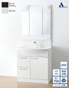 <倉庫-ページ統合>【公式店】洗面台 750幅 2枚扉 三面鏡 LED照明 くもり止め シャワー水栓 壁付水栓 壁出水栓 一般地仕様 寒冷地仕様 洗面化粧台 ピュレア 標準 低圧メラミン化粧板 LKSP750TS(W)E3AFL2W1 ホワイト