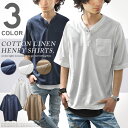 コットン×リネン 5分袖 リラクシングシャツ 全3色≪在庫限り!≫ リネンシャツ メンズ シャツ 半袖 5分袖 五分袖 プルオーバー カプリシャツ 七分袖シャツ ヘンリーネック Vネック ワイドシルエット カジュアル 春 夏 春夏 服 夏服