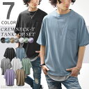≪2点SET≫ セミワイドシルエット 半袖Tシャツ&タンク 全7色≪在庫限り!≫ カットソー メンズ 半袖 Tシャツ タンクトップ ワイドシルエット ドロップショルダー ワッフル ロングタンク クルーネック レイヤード カジュアル 春 夏 春夏 服