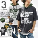 ヘヴィウエイト綿100 フードレイヤード Tシャツ 全3色≪在庫限り!≫ Tシャツ カットソー メンズ 半袖 フード パーカー レイヤード カレッジロゴ プリント ワイド BIGシルエット ワイドシルエット ドロップショルダー カジュアル ストリート