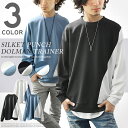シルキー加工 ラウンドヘム L/S カットソー 全6色≪在庫限り!≫ カットソー メンズ 長袖 クルーネック 無地 プリント ワイドシルエット BIGシルエット ドロップショルダー レイヤード カジュアル キレイめ メンズファッション