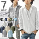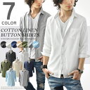 無地&ストライプ コットンリネン 長袖シャツ 全7色≪在庫限り!≫ シャツ メンズ リネンシャツ 長袖 ボタンシャツ コットンリネン 綿麻 麻 スリム ショート丈 無地 ストライプ カジュアル キレイめ 春 夏 春夏 服