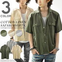 ワイドシルエット コットンリネン サファリシャツ 全3色≪在庫限り!≫ シャツ メンズ ミリタリーシャツ リネン 綿麻シャツ 半袖 BIGシルエット ワイドシルエット ドロップショルダー カジュアル 大きいサイズ