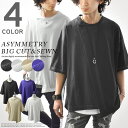 USAコットン アシメ切り替え ビッグTee 全4色≪在庫限り!≫ カットソー Tシャツ メンズ 半袖 無地 コットン 切り替え BIGシルエット ドロップショルダー カジュアル ストリート 春 夏 春服 夏服