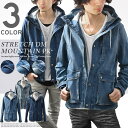 ウォッシュ加工 ストレッチデニム マウンテンパーカー 全3色≪在庫限り!≫ マウンテンパーカー メンズ デニム ジャケット ライトアウター マンパー ストレッチ フード パーカー ジップアップ カジュアル