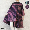 カーヴィータイダイ スタンドカラーシャツシャツ レディース 7分袖 おしゃれ スタンドカラー スタンドネック 斜めボタン シャツ 綿 コットン アシンメトリー アシメ 変形 ロング丈 ロングシャツ タイダイ染め 羽織り 可愛い かっこいい 春 夏 秋 個性的 エスニック アジアン *2