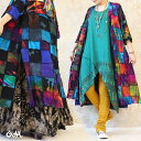 GOAのインド綿コレクション 柄を羽織るビッグロングガウンカーディガン 半袖 大きいサイズ レディース メンズ 薄手 綿100% インド綿 ロングガウン ロングカーディガン ロング丈 ゆったり 5分袖 フリーサイズ オーバーサイズ 3L 4L 5L 羽織り 総柄 アフリカン パッチワーク風 *2 *y3-2t