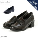 約5cmヒールのクッションやわらかローファーLady worker(レディワーカー)厚底ローファー レディス レディース 通勤 ミドルヒール 防臭 黒 ダークブラウン 3E相当 22.0-25.5cm LO-17660 アシックス商事