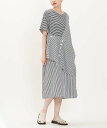 【期間限定P5倍】as know as あちこちいろいろOP レディース カットソー ワンピース 半袖ワンピース ワンピース ラウンド フレアー ボーダー ストライプ 半袖 タック 変形 飾り 釦 ドゥバズ