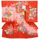 初着 女の子 産着 祝着 お祝い着 お宮参り 着物 正絹 赤ちゃん ピンク 黄色 綸子 漆喰風【お仕立て上がり】初着 女の子 加賀友禅調 産着 祝着 お祝い着 着物 正絹 お宮参り 赤ちゃん ベビー 赤色 あすかや [商品番号pt3596]