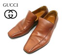 人気 定番 ブランド 男性 中古 GUCCI グッチ レザー スクエア トゥ スリッポン ドレスシューズ サイズ41E ブラウン 茶 革 ステッチ くつ【GUCCI】 グッチ レザー スクエア トゥ スリッポン ドレスシューズ サイズ41E ブラウン 茶 革 ステッチ【中古】