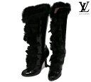 女性 レディース LV 人気 エナメル ファー リボン トレンド セレブ 高級 ブランド【LOUIS VUITTON】ルイヴィトン エナメルロングブーツ 351/2 23cm ブラック【中古】