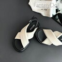 疲れにくいフラットソールで 日常使いからリゾートまで気軽に取り入れたいデザインです送料無料 予約販売ITEM 編込んだような個性的なアッパーデザインで存在感 3.5cm厚底クロスストラップスリッパサンダルパンプスシューズ靴 選べる5サイズ3カラー 程よく甲を覆うようなシルエットで カジュアル過ぎずスタイリッシュなフォルム