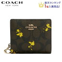コーチ 財布 二つ折り ミニ財布 コーチ ピーナッツ コラボ スヌーピー COACH ファクトリー 新作 COACH X PEANUTS スナップ ウォレット シグネチャー キャンバス ウッドストック プリント ブラウン ブラック マルチ