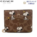 コーチ 財布 二つ折り ミニ財布 コーチ ピーナッツ コラボ スヌーピー COACH ファクトリー 新作 COACH X PEANUTS スナップ ウォレット シグネチャー キャンバス ウッドストック プリント ブラウン ブラック マルチ