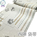 リサイクル帯 全通柄 上質 袋帯 ふくろ帯 帯 お出かけ お食事 ショッピング など たとう紙付き 送料無料 販売 購入 綺麗 美品 リユース すごいね【中古】 すごい値! 袋帯 リサイクル 正絹 全通 京都 西陣 白ベージュ 銀グレー スクエア 上質 カジュアル 美品 中古 仕立て上がり 春 秋 冬 みやがわ neb01554