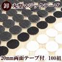 縫い付け不要で簡単便利♪ たっぷり使える大容量パック #ゆうパケ12点可【先着150円OFFクーポン】【卸売り】両面テープ付き 丸型 面ファスナー 20mm 100ペア 全2色 ■ まとめ買い 粘着剤 両面テープ シール シール接着 白 ホワイト 黒 ブラック ハンドメイド 手芸 手作り ■
