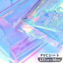 【半端な長さ 現品限り 52cm】PVC ホログラム シート 生地 ■ オーロラ カラー