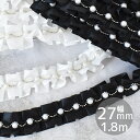 パールとチェーンが飾られた高級感あるフリルレース #ゆうパケ6点可パール & ブリオン チェーン 付き レース 約27mm幅 約1.8m 全2色 ■ 2ヤード フリル ブレード コード サテン リボン テープ ドレス 衣装 推し活 材料 カルトナージュ ハンドメイド 手芸 手作り ■