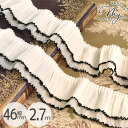 黒の縁取りがアクセント。ふんわり重なる、2段仕立てのレース #ゆうパケ4点可クラシカル 2段 シフォン レース 46mm幅 2.7m ■ フリル アンティーク ロリータ ゴスロリ リボン ドレス 衣装 レトロ クラシック デコ 小物 装飾 お遊戯 衣装 推し活 手作り カルトナージュ ハンドメイド ■