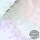 ラブリーなプリントがとってもキュート #ゆうパケ4点可ハート の オーガンジー フリル ギャザー レース ゆめかわ 約40mm 幅 約4.5m ■ 4cm 5y 5ヤード 入園 入学 推し活 グッズ パープル オレンジ グリーン リボン カルトナージュ 小物 雑貨 衣装 ドレス ダンス 装飾 手作り かわいい 手芸 ハンドメイド ■