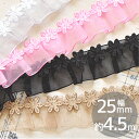 オーガンジーの透け感とフリルが可愛い♪ ゴム入りレース #ゆうパケ2点可ゴム付き ギャザー レース オーガンジー 約25mm幅 約9m ■ 推し活 グッズ 2.5cm 手芸用レース ギャザーレース リボン テープ フリル ラブリー ロリータ ダンス 衣装 ウェディング 手芸 手作り 白 ピンク ブルー 黒 ■