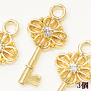 ラインストーンがキラッと光る 小さなキーチャムが可愛らしい♪アクセサリーやキーホルダーに。#ゆうパケ100点可キーチャーム 約28mm ×13mm 3個 ■ ゴールド カン付き ラインストーン アクセサリー 鍵 パーツ チャーム イヤリング セット ピアス 手芸 手作り ■
