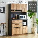 カフェ風おしゃれなキッチンボード 食器棚 レンジ台 カップボード 収納 完成品 木目 新生活 一人暮らし 新居 炊飯器台 大容量 フルスライドレール キッチン収納 送料無料食器棚 完成品 105cm レンジボード オープンボード キッチン収納 国産 開き扉 ハイタイプ コンパクト 幅105cm 奥行45cm 台所収納 キッチンボード カップボード コンセント付き 引出し スライドレール スライド棚 可動棚 ブラックスチール 食器収納 オープンスペース 木製 北