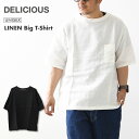 【2025年春夏新入荷】【SALE 30%OFF】DELICIOUS [デリシャス] LINEN Big T-Shirt [DC20083] リネンビッグT-シャツ・・ゆったりシルエット・ジャケット合わせ・アウトドア・タウン・カジュアル・MEN'S/LADY'S [2025SS]