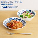 うつわやさんオリジナル 軽量 かわいい 和・北欧テイストカレー皿 4枚セット メランコリコ プレートL 箱入 パスタ皿 北欧 花柄 軽い おしゃれ 箱入 ギフトセット プレゼント 日本製 美濃焼 軽量 食器 食器セット フラワーモチーフ