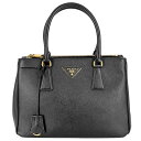 中古 プラダ ハンドバッグ レディース ブラック ゴールド【ポイント10倍】 プラダ ハンドバッグ レディース ガレリア ミディアム PRADA 1BA863 レザー ブラック 黒 ゴールド金具【中古品】