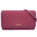 中古 プラダ チェーンウォレット レディース ピンク ゴールド【ポイント10倍】 プラダ チェーンウォレット レディース キルティング ショルダーバッグ ショルダーウォレット 財布 肩掛け 斜め掛け PRADA 1M1437 ナイロン レザー ピンク ゴールド金具 美品【中古品】