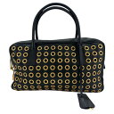 中古 プラダ ハンドバッグ レディース ブラック ゴールド パンチング リングスタッズ 三角ロゴ レザープラダ ハンドバッグ レディース パンチング リングスタッズ 三角ロゴ レザー PRADA WS11227 ブラック 黒 ゴールド金具【中古品】