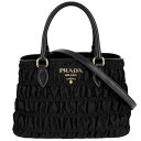 中古 プラダ 2WAY レディース ブラック ゴールドプラダ 2WAY レディース ギャザー ナッパゴーフル ハンドバッグ ショルダーバッグ 肩掛け 斜め掛け PRADA 1BA173 ナイロン レザー ブラック 黒 ゴールド金具【中古品】