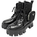 中古 プラダ ブーツ レディース ブラック ブラック 靴 38サイズ 約25cmプラダ ブーツ レディース トライアングルロゴ モノリス ポーチ付き ショートブーツ 靴 38サイズ 約25cm PRADA 1T255M レザー ナイロン ブラック 黒 ブラック金具【中古品】